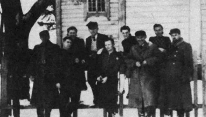 Sztab 27. WDP AK w chwilę po przekazaniu dowodzenia ppłk Janowi Kiwerskiemu „Oliwa” przez płk Kazimierza Bąbińskiego „Luboń”, drugi z lewej stoi ksiądz Antoni Dąbrowski „Rafał”, obok ppłk Jan Kiwerski