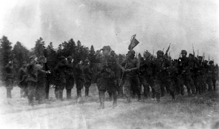 II batalion 77. pp AK defiluje przed swoim dowódcą kpt. Janem Borysewiczem „Krysia”, 3 maja 1944 r.;