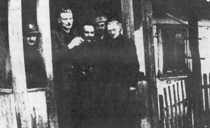 Dowództwo nowogródzkiego III batalionu 77. pp AK (UBK), od lewej Jan Wyszomirski „Wroński” adiuntant bonu, Bolesław Piasecki „Sablewski” komendant UBK, Stanisław Briesenmeister „Kowalski” oficer informacyjny, Wojciech Kętrzyński „Wołkowyski” szef sztabu, Stanisław Hniedziewicz „Olgierd” dowódca 3. kompanii, R. Korab-Żebryk „Operacja Ostra Brama”