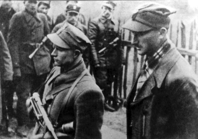 Dwaj oficerowie 4. Brygady Wileńskiej studiujący mapę; |
