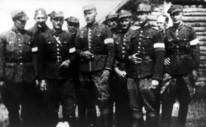i osadzeniu w obozie w Kupczelach gm. Opsa, pow. Brasław, piąty z lewej dowódca 24. Brygady