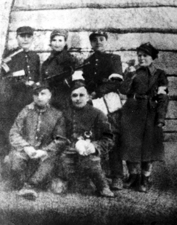 Jan Olszewski „Ryś”, dowódca zwiadu konnego 23. Brygady, Zofia Malicka „Ola”, sanitariuszka 23. Brygady, siedzą kucharze 23. Brygady, ze zb. Muzeum Armii Krajowej Okręgu Wilno „Wiano” |