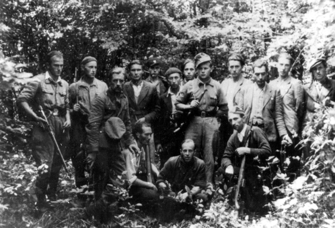 Oddział leśny 2. kompanii 51. pp pod Brzeżanami, stoją od lewej Wiktorczyk, Miszek, Dynowski, w środku siedzi Staliś, nad nim stoi Kopeć (w czapce), ze zbiorów Światowego Związku Żołnierzy Armii Krajowej Obszar Lwów