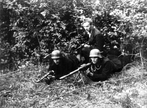Sekcja lekkich karabinów maszynowych 1. kompanii samborskiej, ze zbiorów Światowego Związku Żołnierzy Armii Krajowej Obszar Lwów |