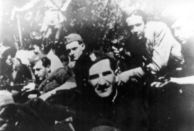 Na pierwszym planie wachm. J. Ostrowski „Tajojko”, ostatni po prawej Władysław Cisek „Dowbór”,