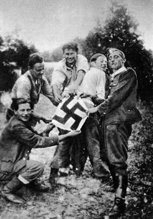 Zdobyta flaga III Rzeszy stała się przedmiotem niewybrednych żołnierskich zabaw, ze zb. Światowego Związku Żołnierzy Armii Krajowej |