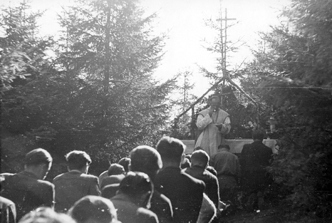 Mszę odprawia ksiądz Stanisław Główka „Robak”, z kolekcji Zofii Horodyńskiej w zbiorach Muzeum Regionalnego „Dom Grecki” w Myślenicach |