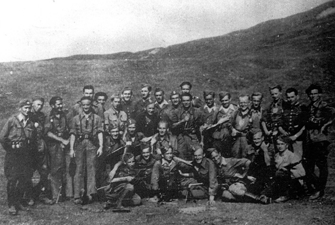 Oddziały „Grom” i „Błyskawica” na pierwszej koncentracji na Grodzisku, od lewej Władysław Kordula „Roman”, Czesław Ciepiela „Karp”, Zbigniew Kulig „Zbójnik”, Wojciech Niedziałek „Judasz”, NN „Mściciel”, Marcin Miklaszewski „Mały”, Józef Bobek „Zawisza”, Kazimierz Stelmach „Cień”, Stanisław Kozera „Szczygieł”, Włodzimierz Rozmus „Buńko”, Bolesław Podbiera „Jastrząb”, Jan Szczęch „Czarny”, Zbigniew Gawlik „Żmija”, Zdzisław Meres „Orlik”, Józef Bieniasz „Kat”, Tadeusz Niewidok „Wadoń”, Edward Nowacki „Soroka”, Kazimierz Stelmachowski „Wróbel”, Mieczysław Pogan „Błyskawiczny, Stanisław Kodura „Drozd”, Jan Fiszer „Łęczyc”, Stanisław Pluciński „Żbik”, Bolesław Gąsiorek „Ponury”, Zdzisław Jabłoński „Szczupak”, Jan Kordula „Dziki”, Józef Borkowski „Kruk”, Kazimierz Gołąb „Lis”, Mieczysław Madej „Gołąb”, Józef Szwalbic „Puchacz”, Marian Pogan „Rzeżucha”, ze zb. Światowego Związku Żołnierzy Armii Krajowej, Baon „Skała” |