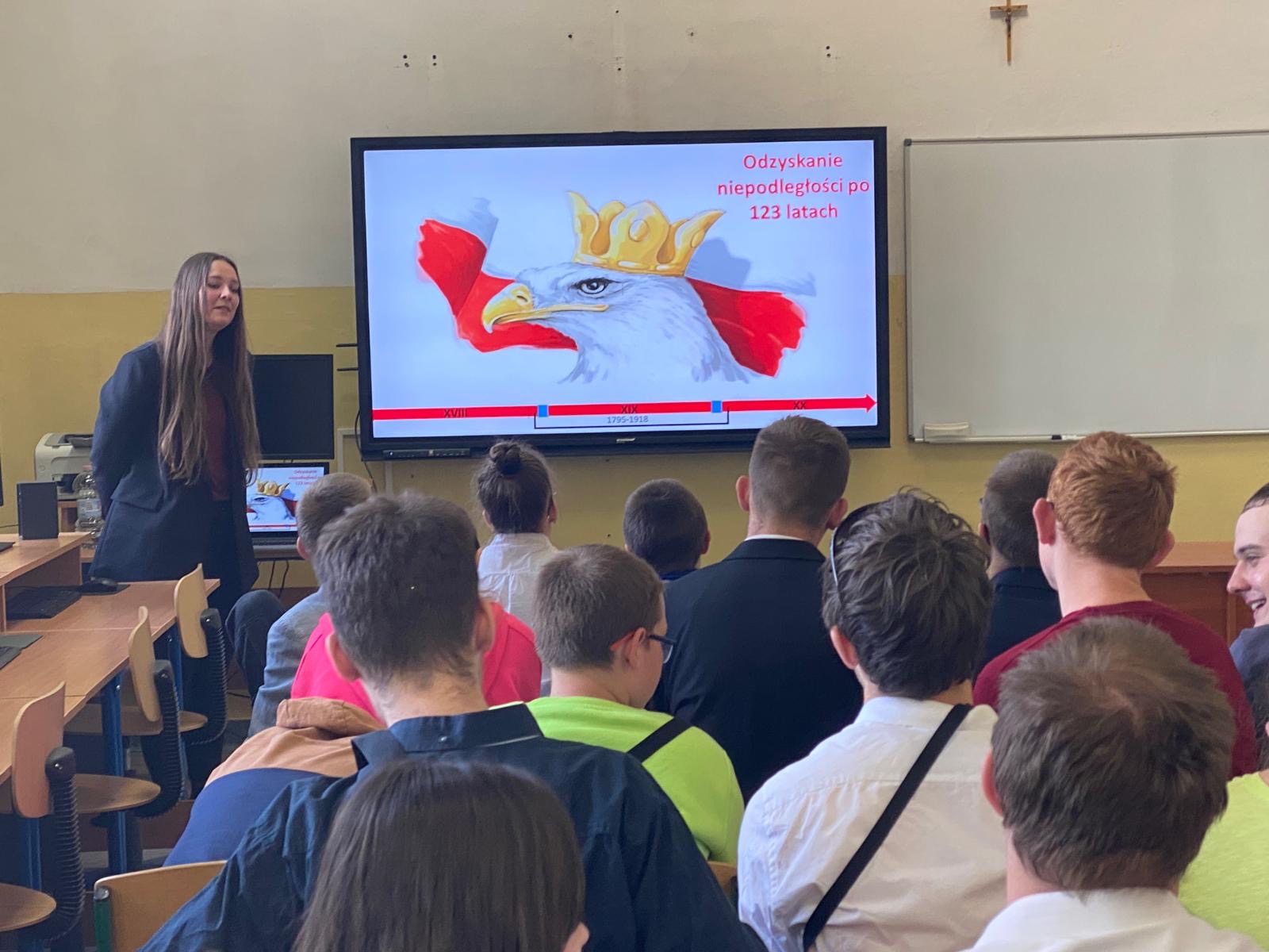 Wykład, który przygotowała i przedstawiła Angelika Tokarska, pracownik Biura Edukacji Narodowej IPN w Opolu, poprzedziło przedstawienie przygotowane przez uczniów szkoły.