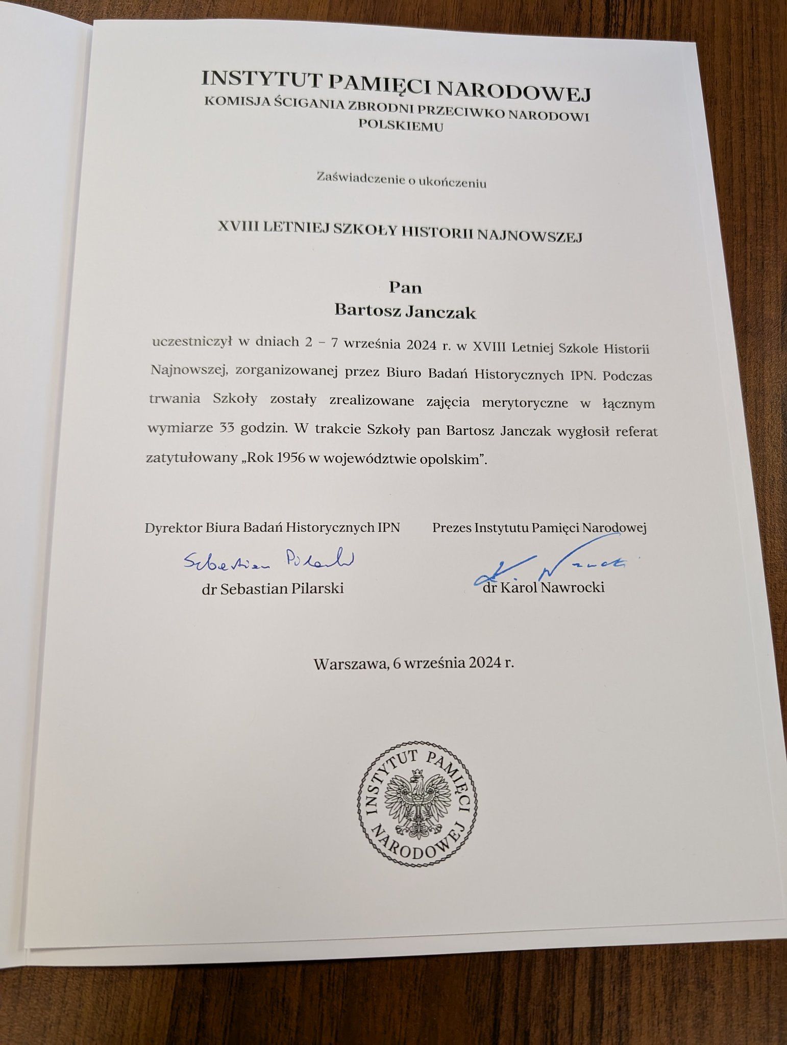 W Szkole Letniej brał udział pracownik Biura Badań Historycznych Instytutu Pamięci Narodowej Delegatura w Opolu Bartosz Janczak, który wygłosił referat na temat wydarzeń roku 1956 w województwie opolskim. Wydarzenie zakończyło się uroczystą kolacją oraz rozdaniem dyplomów i nagród uczestnikom przez przedstawiciela prezesa Instytutu Pamięci Narodowej.
