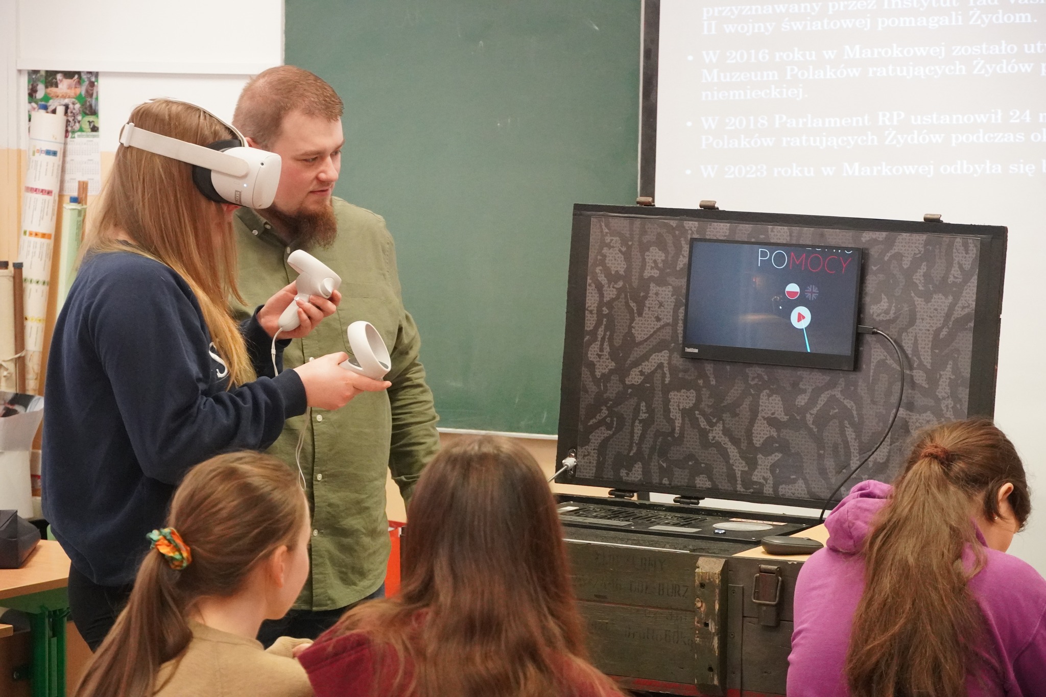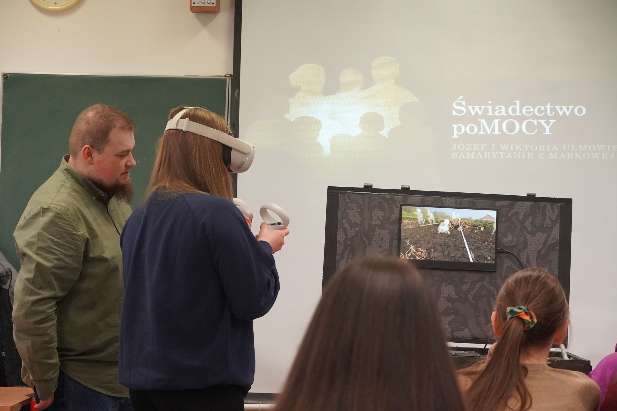 W ramach zajęć dzieci mogły uczestniczyć w niezapomnianej lekcji historii dzięki skrzyniom immersyjnym, które umożliwiły im przeżycie „Świadectwa poMOCY” – immersyjnej etiudy przybliżającej dramatyczne losy rodziny Ulmów, którzy w czasie wojny narażali życie, by uratować innych.
