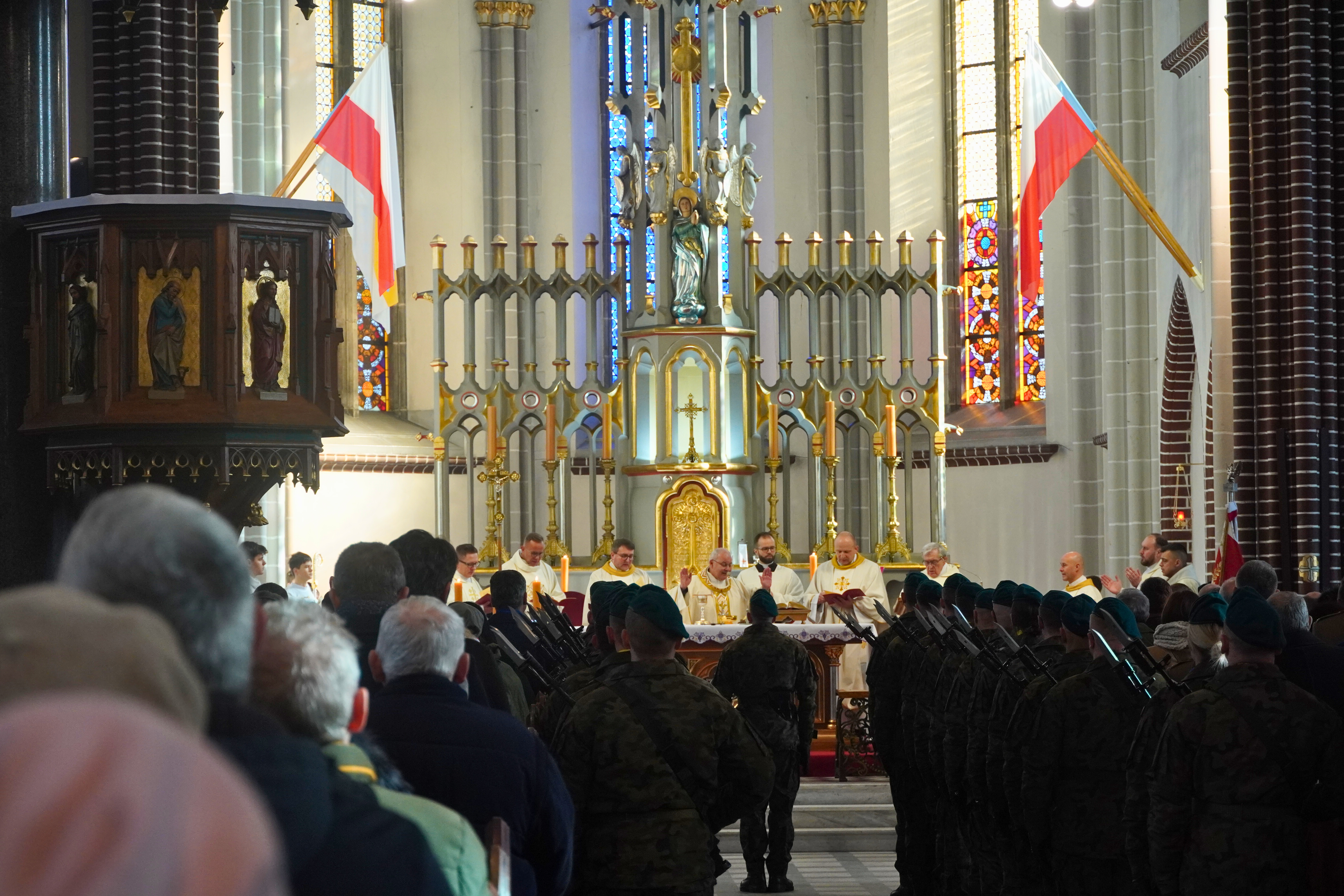Uroczystość rozpoczęła się od wystawienia posterunku honorowego oraz wprowadzenia wojskowej asysty honorowej – Kompanii Honorowej 10. Opolskiej Brygady Logistycznej i Orkiestry Wojskowej z Bytomia. Dowódcą kompanii był kpt. Mateusz Bojczuk, dowódcą–kapelmistrzem st. chor. szt. Robert Pyś, a funkcję tamburmajora pełnił st. sierż. Piotr Dziadkowiec.