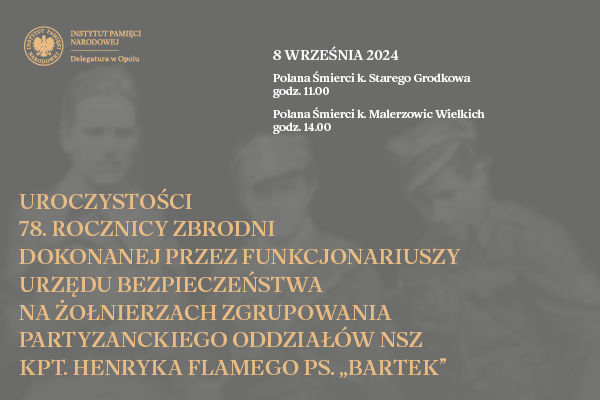 06/09/2024Zapowiedź uroczystości w 78. rocznicę zbrodni na żołnierzach NSZ kpt. Henryka Flamego ps. „Bartek" – Stary Grodków, Malerzowice Wielkie, 8 września 2024